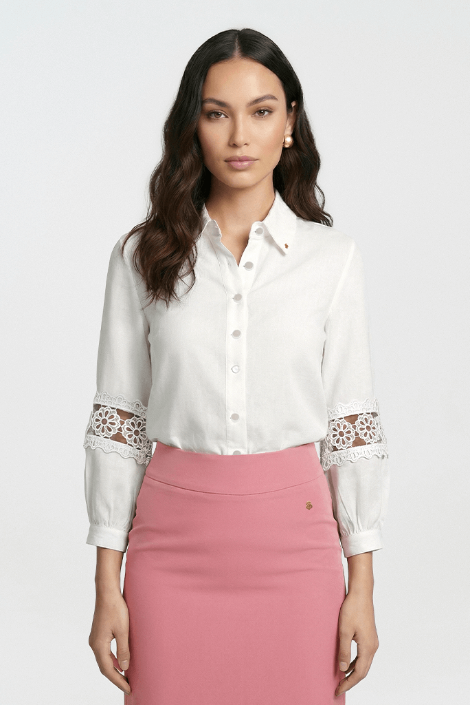 A modelagem foi inspirada nas camisas sociais masculinas, mas hoje em dia, ganharam mais vida, detalhes e delicadeza.